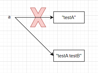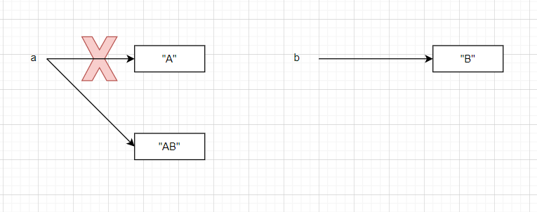a에 "AB"가 할당될 때, "A"가 "AB"로 대체되는 것이 아니라 "AB"를 위한 메모리 공간을 새로 할당하고 이를 변수a가 가리킨다.