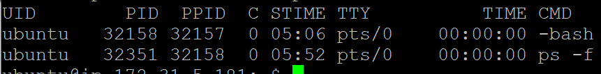 리눅스에서 ps명령어를 입력하면 PID를 확인할 수 있다. ps -f 를 입력하면 ppid까지 확인가능하다.