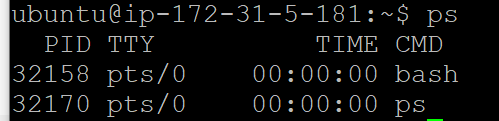 리눅스 터미널에서 ps를 입력하면 현재 실행 중인 프로세스목록을 확인할 수 있다.