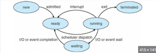 프로세스 상태에는 new,ready,waiting,running,terminated 로 나뉜다. 운영체제에 따라서 더 세분화해서 구분하는 경우도 있다. process state diagram은 아래와 같다.