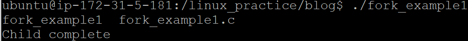 부모프로세스의 경우 wait 시스템콜을 통해 자식프로세스가 종료되길 기다리고있으므로 ls명령어가 먼저 실행된 이후에 부모프로세스의 실행이 이어진다. 따라서 터미널의 출력 결과는 아래와 같이 나타난다.